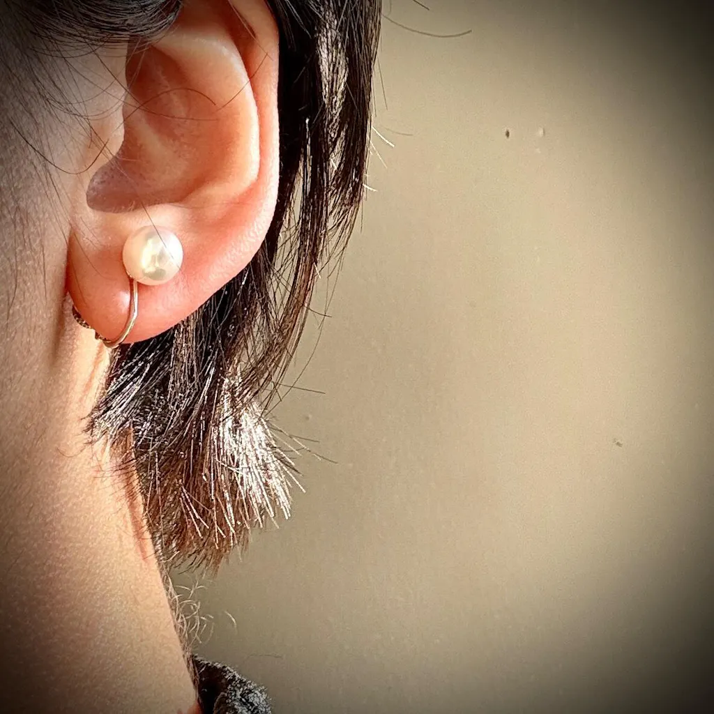 最もベーシックなジュエリーのひとつ、パールのシンプルなイヤリングに合わせて、品質にこだわり、形や色合いが整った珠を丁寧にペア組みしました。